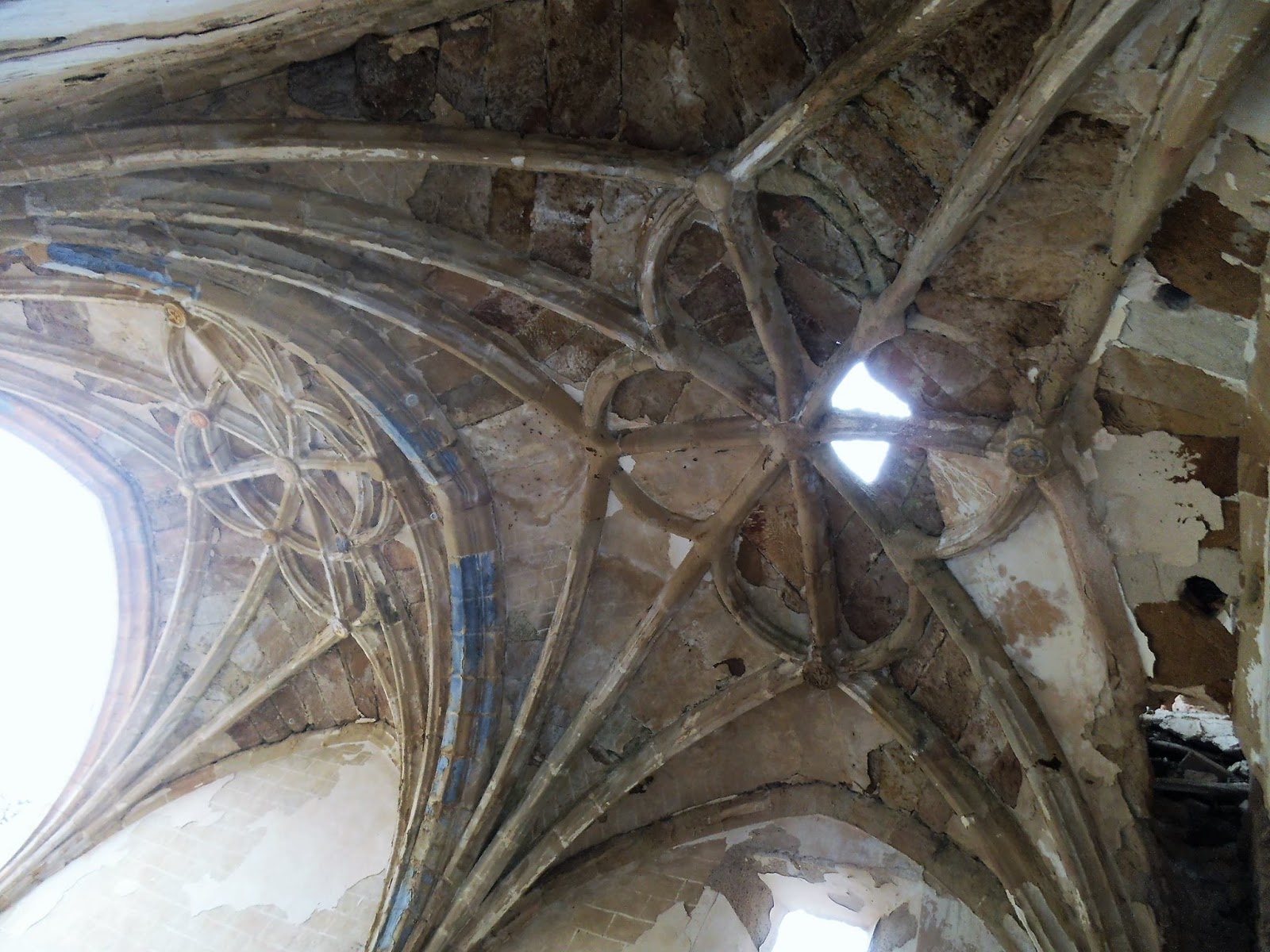 Luego el expolio continuo. Hoy pórtico desaparecido, tejado en el suelo, las últimas nervaduras a punto de desprenderse del techo, escalera de caracol haciendo equilibrio, el coro sin voces, las campanas, .......
